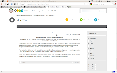 Boy, this is embarrassing! The Italian Ministro for Education and Research, Maria Stella Gelmini, has released a press statement congratulating with the (italian) physicists of the OPERA experiment, of which you might have heard in the past few days, for the “momentous victory” of “exceeding the speed of light” — as if the whole thing was meant for the Guinness book of World Records!